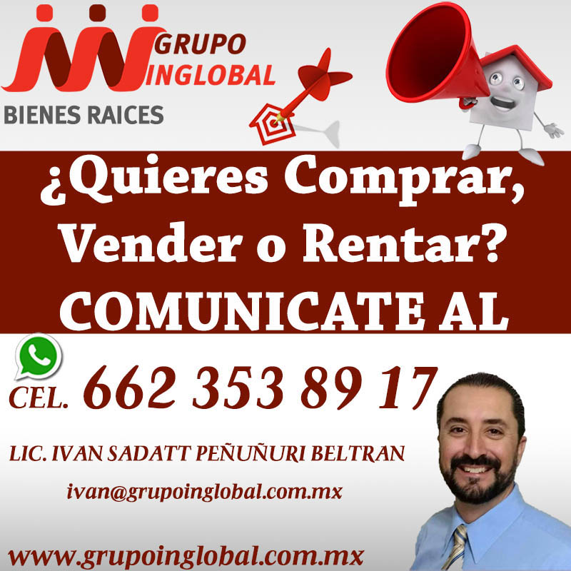 ¿Quieres Comprar, Vender o Rentar? Comunicate al Cel. 662 353 89 17 |